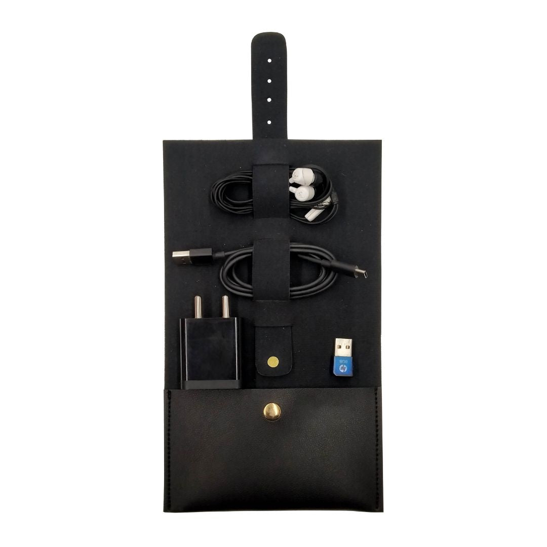 Crafted from durable and water-resistant materials, this folder is designed to securely hold your Pens, Stationery, charger, and other accessories. The Tie-String ensures that your items stay in place while you're on the move, giving you peace of mind and added convenience.